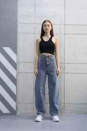 - Bayan Mavi baggy jeans arka kemer detaylı kot pantolon Yeni sezon