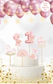 - 1 Yaş Temalı Pembe Pasta Üstü Figür Set