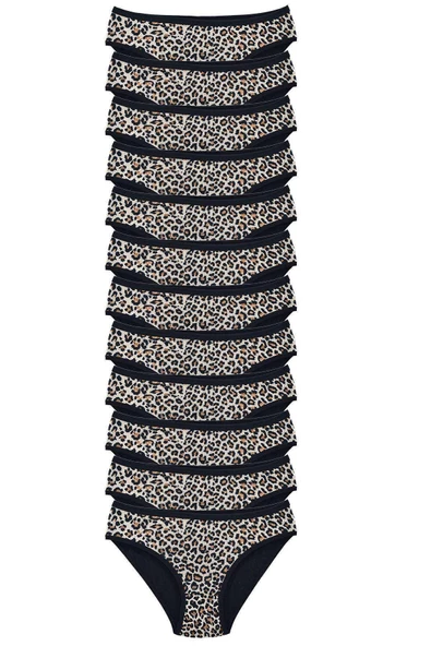 12 Adet Leopar Desenli Likralı Yumuşak Dokulu Kadın Slip Külot