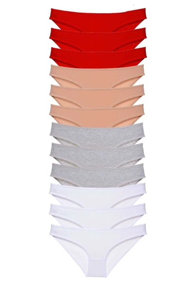 12 adet Süper Eko Set Likralı Kadın Slip Külot Kırmızı Ten Gri Beyaz
