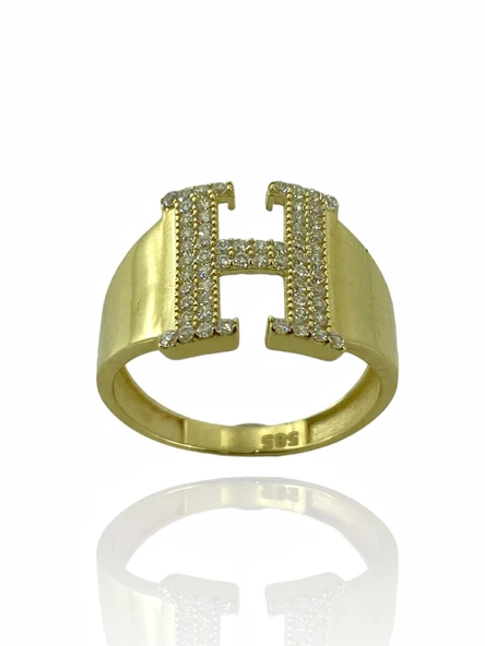 14 Ayar Altın H Harfli Üst Kalite Trend Harf Yüzük