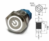 - 16mm Metal Buton Beyaz Power Sembol Led Işıklı Panel Montaj Düz Kafa Kilitlemeli