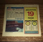 Ana Sayfa Ofis & Kırtasiye Dosyalama ve Organizasyon Takvimler, Organizerler ve Planlayıcılar 19 AĞUSTOS 1979 PAZAR Milliyet Yayınları KÜLTÜR TAKVİMİ Yaprağı (Sahafiye Kitap)
