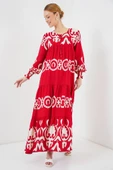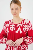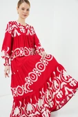 1947 Desenli Uzun Elbise - B.Kırmızı