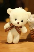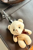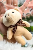 - 2 Adet Krem-Kahve I Love You Tatlı Ayıcık Sevgili Seti Anahtarlık Çanta Kalemlik Araba