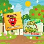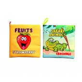 2 Kitap Tox İngilizce Meyveler ve Safari Hayvanları Kumaş Sessiz Kitap E126 E130 - Bez Kitap , Eğitici Oyuncak , Yumuşak ve Hışırtılı