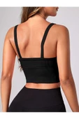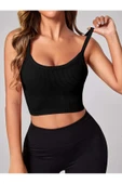 2 Li Paket U Yaka Siyah Beyaz Renk Desensiz Fitilli Kolsuz Askılı Likralı Fit Crop Top Bluz