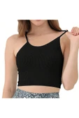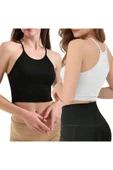 2 Li Paket Yüzücü Sırtlı Siyah Beyaz Renk Desensiz Fitilli Kolsuz Askılı Likralı Fit Spor Büstiyer