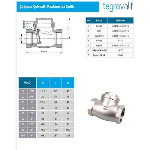 Ana Sayfa Yapı Market & Bahçe Hırdavat Ürünleri Tesisat Hırdavat Ürünleri 2" PASLANMAZ ÇALPARA ÇEKVALF 316
