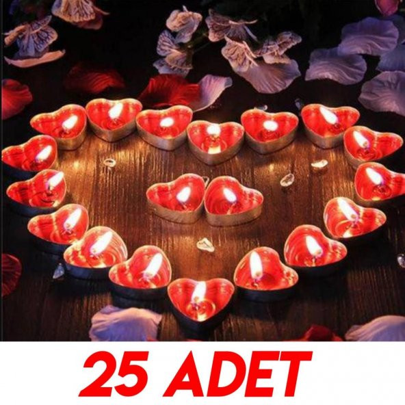 25 Adet Kırmızı Kalpli Mum, Evlilik Teklifi Küçük Tealight Mum