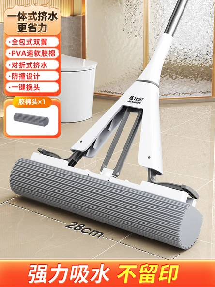 28cm Çift Kanatlı Sıkma Paspas Seti - 1 Adet Hızlı Yumuşayan Pamuk Başlık + 1 Metre 3 Kademeli Sap