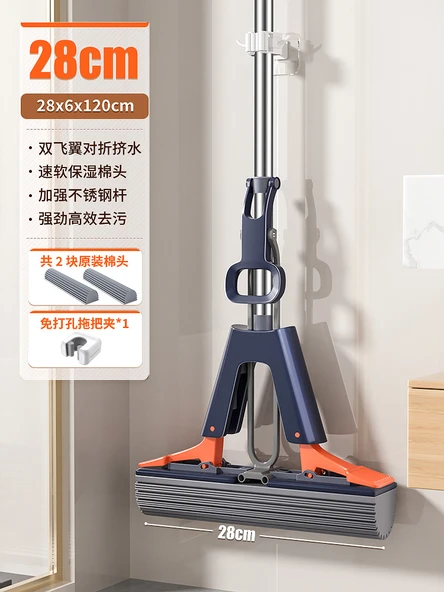28cm Sünger Paspas + 2 Nem Tutucu Başlık + Paspas Klipsi - Paslanmaz Çelik Saplı