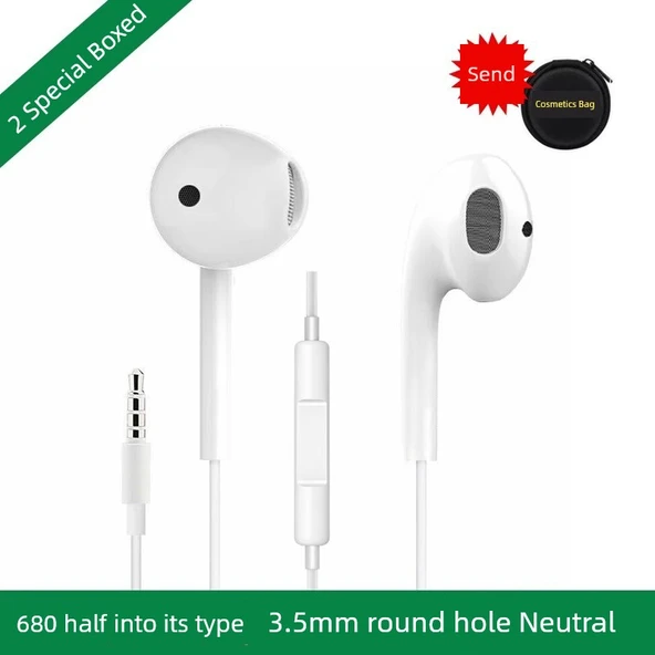 3.5mm Evrensel Kulaklık - 680 Yarım Kulak Model, 3.5mm Yuvarlak Giriş, Makyaj Çantalı (İki Adet, Kutulu)