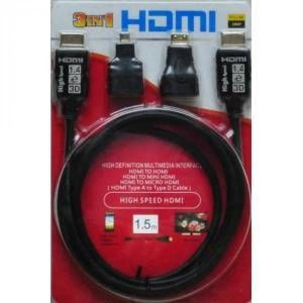 Hdmi Kablo 1.5 Metre 3Lü Set (Micro Hdmi Hdmi Mini Hdmi Hdmi