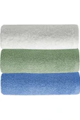 - 3 lü Düz Renk El Yüz Havlu Seti %100 Pamuklu 50x90 Cm Mavi-Yeşil-Beyaz