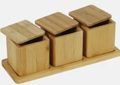 Ana Sayfa Ev Dekorasyon Mutfak Araçları ve Gereçleri Baharat Takımları ve Setler 3'lü Kapaklı Bambu Saklama Kabı Seti | Doğal Ahşap Standlı