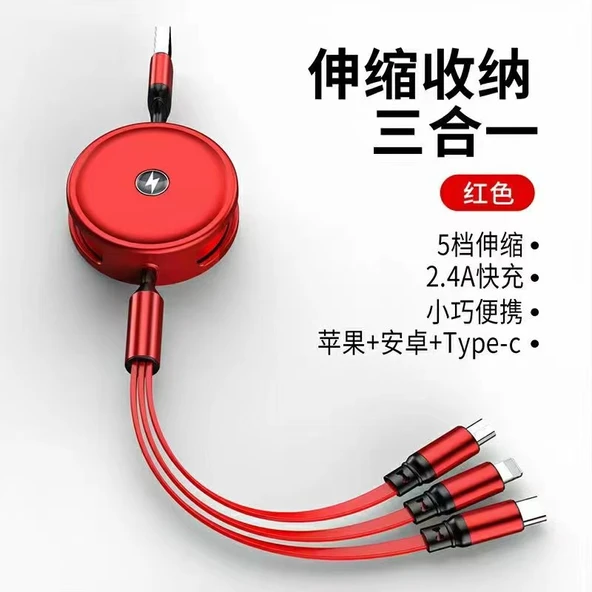 3'ü 1 Arada Çoklu Hızlı Şarj Data Kablosu - Sedefli 2'li-3'lü Süper Hızlı Şarj (Rose Gold)