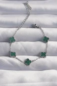 Ana Sayfa Takı & Gözlük & Saat Takı Kadın Takı Bileklik 316L Çelik Baby Boy Gümüş Renk Çizgili Yeşil Mineli Yonca Bileklik