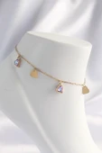 Ana Sayfa Takı & Gözlük & Saat Gümüş Kadın Gümüş Halhal 316L Çelik Gold Renk Minimal Renkli Zirkon Taşlı Kalp Halhal