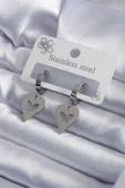 - 316L Çelik Gümüş Renk Kalp Model Kelebek İşleme Kadın Küpe