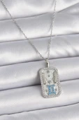 - 316L Çelik Gümüş Renk Zincir İkizler Burcu Zirkon Taşlı Kadın Kolye