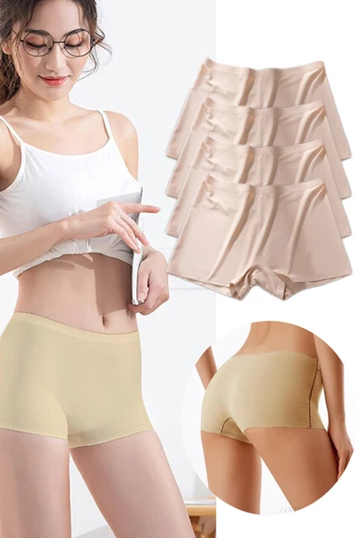 4 Adet Kadın Dikişsiz Görünmez İz Yapmaz Mini Şort Boxer Ten