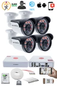 4 Kameralı Set 5MP Full HD Güvenlik Kamerası Seti - 1080p 6 Atom Led Gece Görüşlü Su Geçirmez Plastik Kasa Full HD Güvenlik Kamerası
