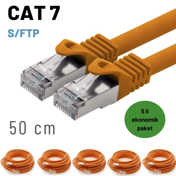 5 adet IRENIS CAT7 Kablo S/FTP Ethernet Network LAN Ağ Kablosu 50 cm Turuncu