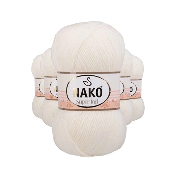 5 Adet Süper İnci El Örgü İpi 100 gr Ekru 300