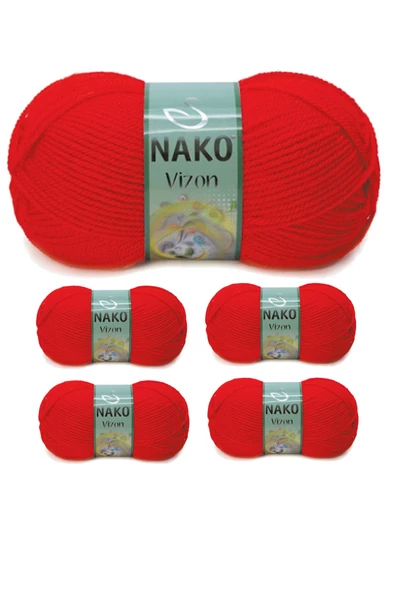 5 Adet Vizon Premium Akrilik El Örgü İpi Yünü Renk No:207 Alev Kırmızı