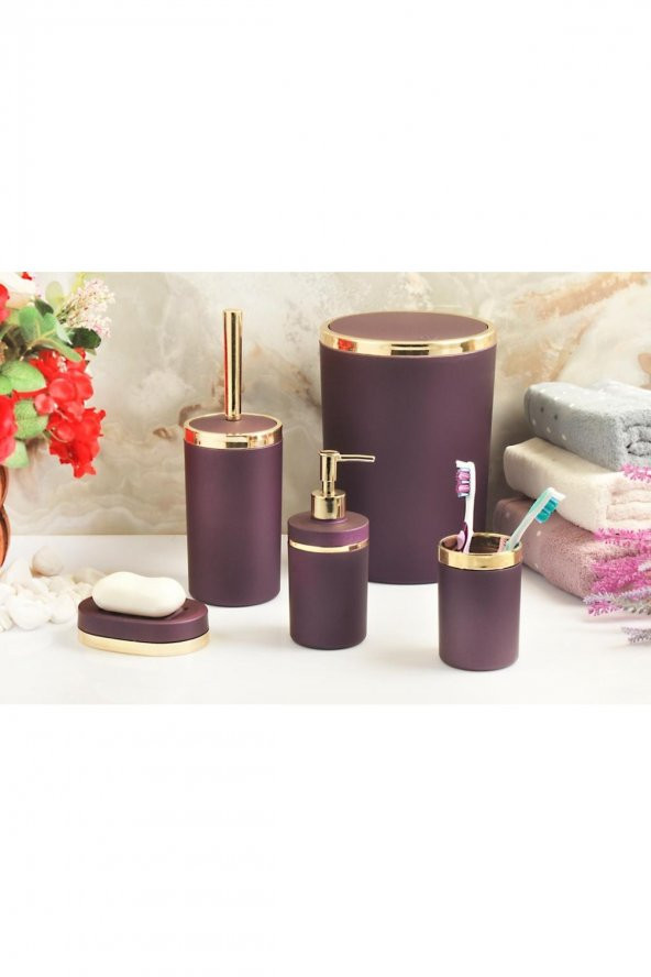 5 Parça Akrilik Gold Çizgi Soft Banyo Takımı Yuvarlak Banyo Seti Mat Mor