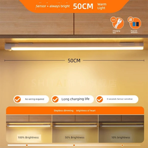 50cm Uzatılmış Sıcak Işık Otomatik Sensörlü LED Gece Lambası