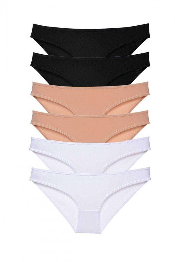 6 adet Süper Eko Set Likralı Kadın Slip Külot Siyah Ten Beyaz