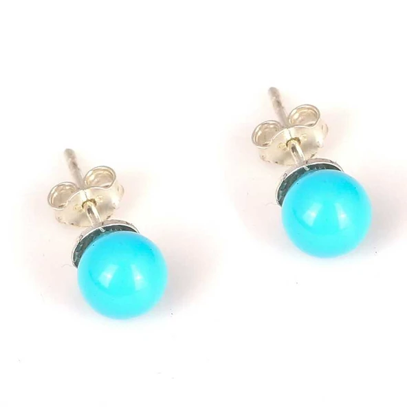 925 Ayar Gümüş 6 Mm Firuze Toplu Küpe