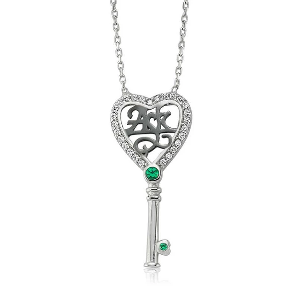 925 Ayar Gümüş Aşk Yazılı Anahtar Kadın Gümüş Kolye