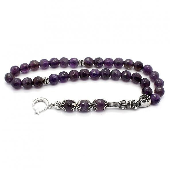 925 Ayar Gümüş Ayyıldız Model Ametist Taşı Tesbih