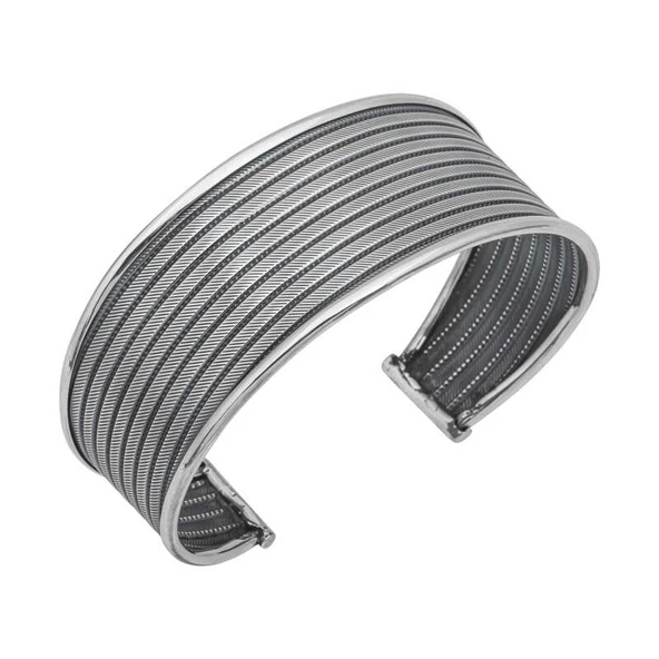 Ana Sayfa Takı & Gözlük & Saat Gümüş Kadın Gümüş Bilezik 925 Ayar Gümüş Eskitme Desenli Kadın Bilezik