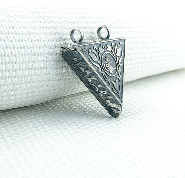 925 Ayar Gümüş Gül Desenli ve Osmanlı Tuğralı Muska Kabı Kolye Ucu