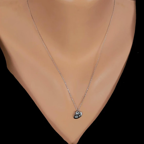 925 Ayar Gümüş Vav Allah Yazılı Kolye, Beyaz Siyah - Beyaz Taş