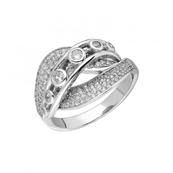 - 925 Ayar Gümüş Zirkon Taşlı Çapraz 3 Sıra Bayan Yüzük