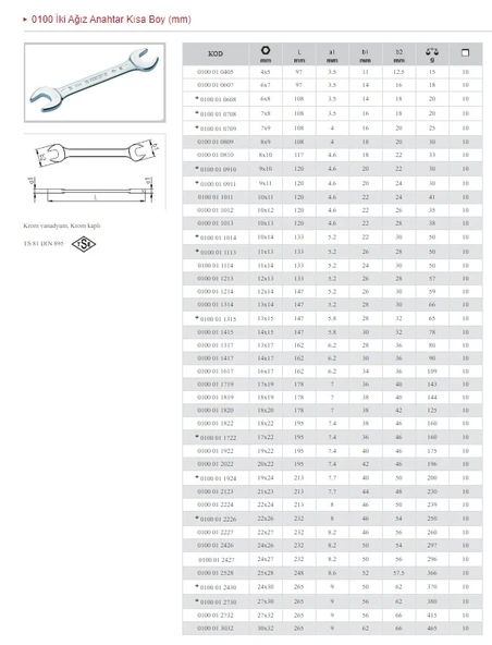 İZELTAŞ 10X11 İKİ AĞIZ KISA ANAHTAR 0100 01 1011