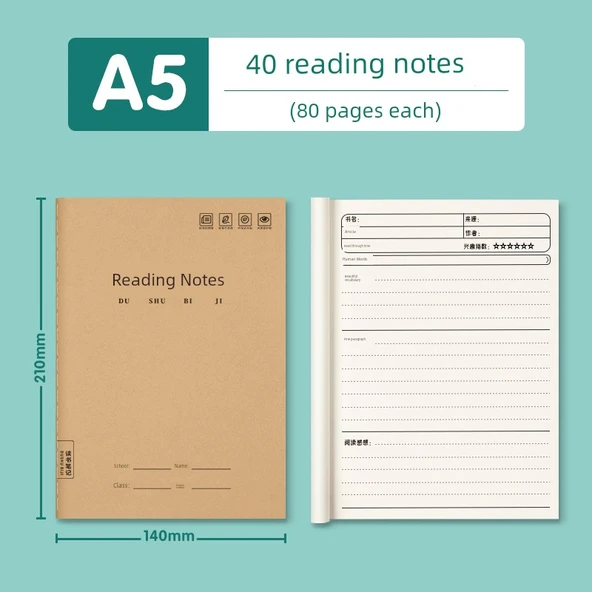 A5 Okuma Notları/40 (80 sayfa her biri)
