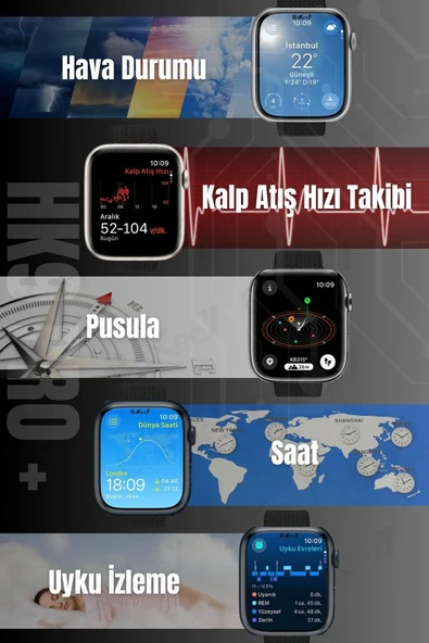 AbaTech İPHONE 7 - İPHONE 8 UYUMLU SMART WATCH HK9 PRO AMOLED EKRAN AKILLI SAAT