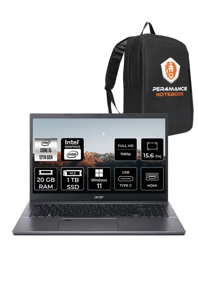ACER Aspire 5 i5 12450H 20GB RAM 1TB SSD 15.6'' FHD W11H Taşınabilir Bilgisayar & PER4 Çanta