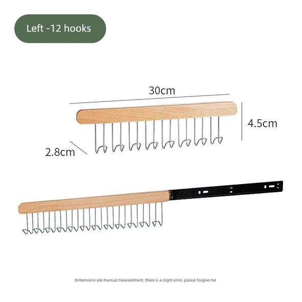 Ahşap Duvara Monte Kancalı Askı - 12 Kanca - Ahşap Rengi (Sol)