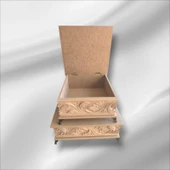 Ahşap- Ham Mdf- Desenli-takı-makyaj-aksesuar-çok Amaçlı- Ayaklı- 2li Dekoratif Kutu