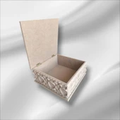Ahşap- Ham Mdf- Desenli-takı-makyaj-aksesuar-çok Amaçlı- Ayaklı Kare Dekoratif Kutu