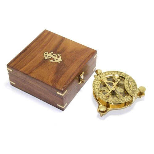 Ahşap Kutulu El Yapımı Pirinç Güneş Saati Ve Pusula