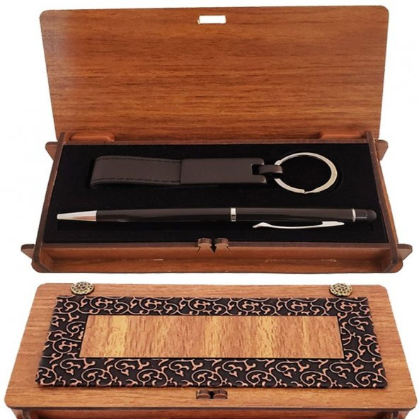 - Ahşap Kutulu Siyah Kalem Ve Anahtarlık