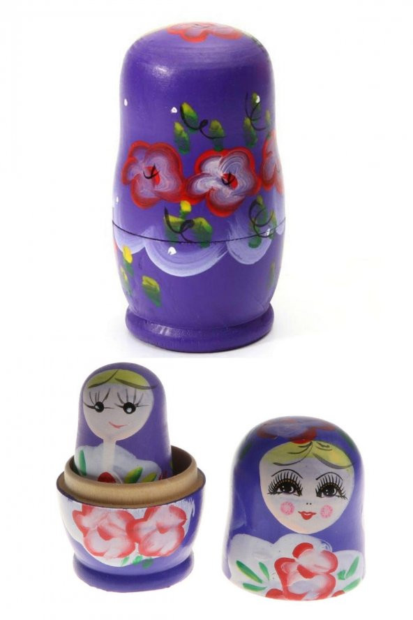 Ahşap Matruşka Bebek Beşli Set Mor